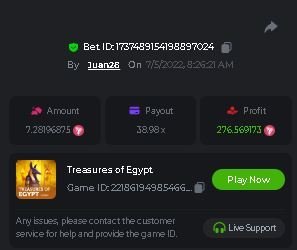 Greetings to all BC Players! Welcome to our weekly event with a prize pool of $2,500! The game selected is Treasures of Egypt slot, where the Top 10 will take home a major reward, and the rest of the $700 will be split between all other participants. There's more: anyone who completes the bonus bounty will receive an equal share of a $500 bonus prize. (Check out more details below).