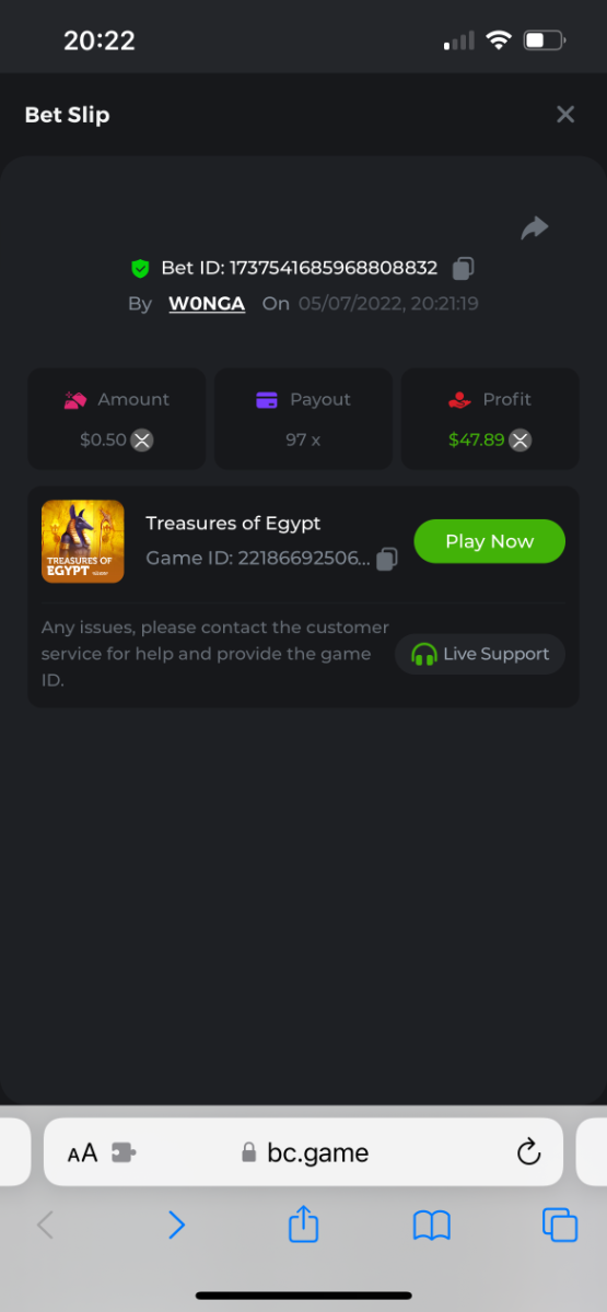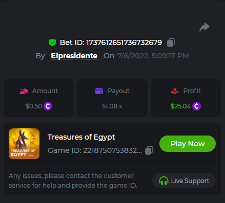 • In the same post, upload a screenshot of your win by clicking the game ID WITH VIEW IN USD mode ENABLED (accessible at the bottom of dropdown menu for your wallet up top. This way, we can ensure that your bet indeed met the minimum requirement at the time of placing it: