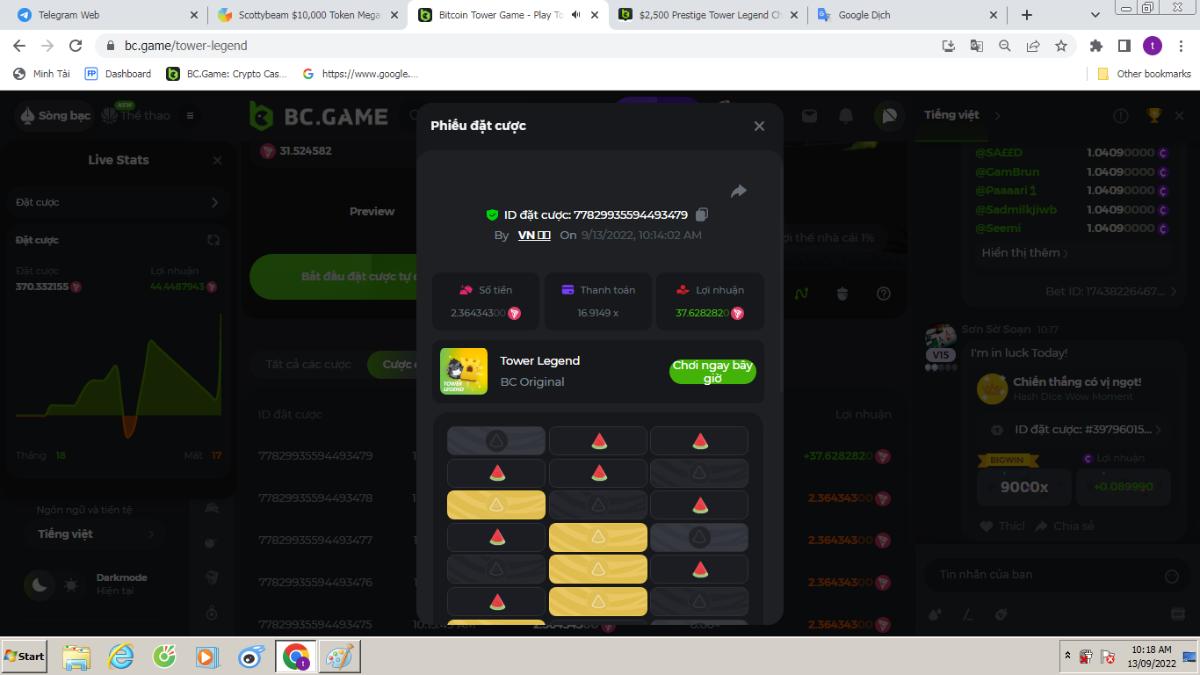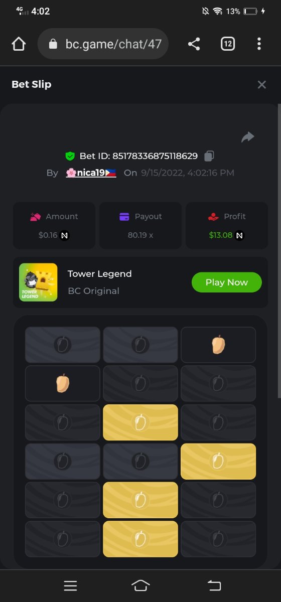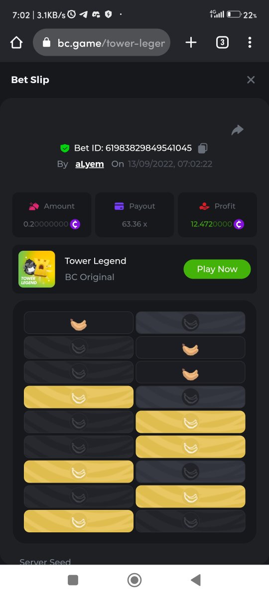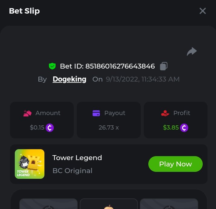 Event Team Niobium Posted September 12, 2022 Event Team Share Posted September 12, 2022 $2.5k Prestige Tower Legend Challenge #46 ♜ Starts: 12, September 8:30pm GMTEnds: 19, September 8:30pm GMT Hello VIPs! Our weekly event is back and better than ever, so get ready to play some Tower Legend! The Top 10 players of the week will receive a major reward, and other participants will also get rewarded for their efforts! But that's not all, anyone who completes the extra bounty will receive an equal share of the $500 prize pool. Come join us, have some fun, and maybe you'll end up at the Top! — More details are given further on. What's the Challenge? Win the highest multiplier you can on BC.Game's in-house game, Tower Legend. (Any difficulty is valid). If there is a tie, the player with the higher average bet amount (in USD) shall be the winner. If there is a tie in the amount and payout, the one who posted or edited his post first will be considered in the Ranking. Minimum VIP There's no minimum VIP level Minimum Payouts Minimum payout to qualify is 15x Minimum Bet Size $0.15 USD equivalent Eligible Coins All cryptocurrencies are eligible (excepting JB) Available Prizes 1st Place....... $500 2nd Place..... $300 3rd Place...... $200 4th Place......$100 5th Place......$50 6th-10th.........$30 All other participants.........$700 Bounty Prize...$500, equal share. EXTRA BOUNTY Post a winning bet with 253.44x multiplier or above and receive an equal share of the $500 prize pool! Original rules apply with all minimum requirements. How to Enter To enter, copy the link of the bet you'd like to submit. Once you've copied it, paste it as a reply to this thread like so: Link: https://bc.game/sd/?sd=10SURLKVEOZRPV In the same post, upload a screenshot of your win by clicking the game ID WITH VIEW IN USD mode ENABLED (accessible at the bottom of dropdown menu for your wallet up top. This way, we can ensure that your bet indeed met the minimum requirement at the time of placing it: Link: https://bc.game/sd/?sd=10SURLKVEOZRPV Please combine all of your hits together in a SINGLE post. Edit your existing post for additional hits, don't create a new post. Each eligible entry must have the Bet Slip URL, failure to include it will disqualify participation in the event. Bet Slip image is not mandatory. Bets must be posted within 24 hours of placing bet in order to keep things fair for everyone. Bets must be made during the specified time window stated above. This thread will lock automatically when the time period is over. One (1) entry per household. Anyone found attempting to win multiple prizes will be disqualified from this challenge as well as all future challenges. Failure to follow instructions will result in your submission being null and void. By entering this challenge, you acknowledge that BC.Game has the final decision on results and placement. Payouts will be made within 72 hours of challenge completion, please be patient, we promise you that we haven't forgotten. We check and double check to make sure the rightful winners receive their prize. Prizes will be paid out in BCD. Good luck everyone! Link to comment Share on other sites More sharing options...