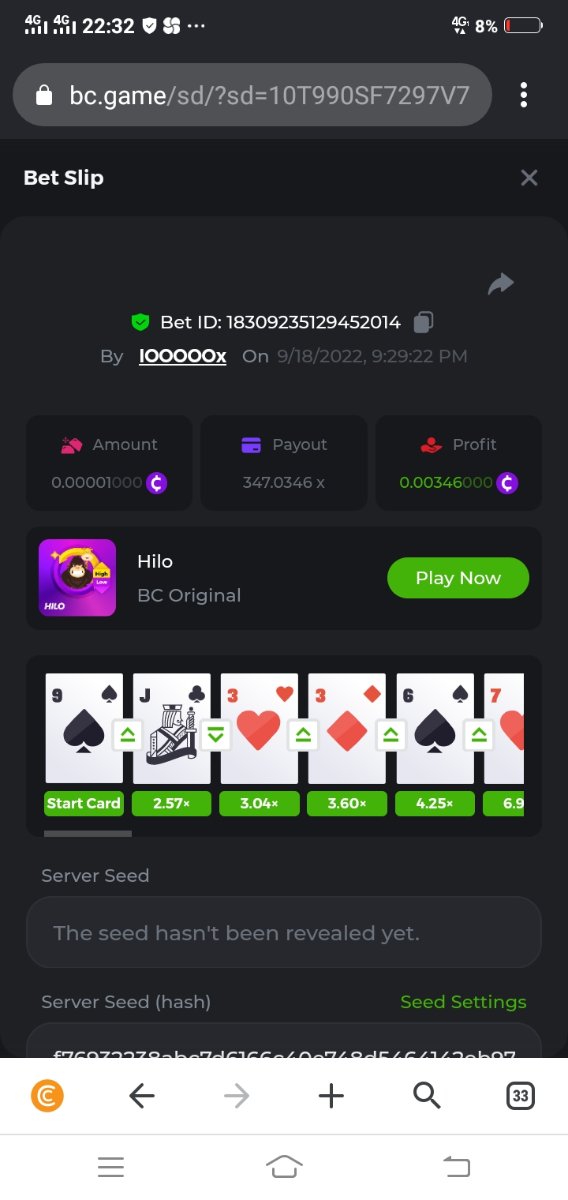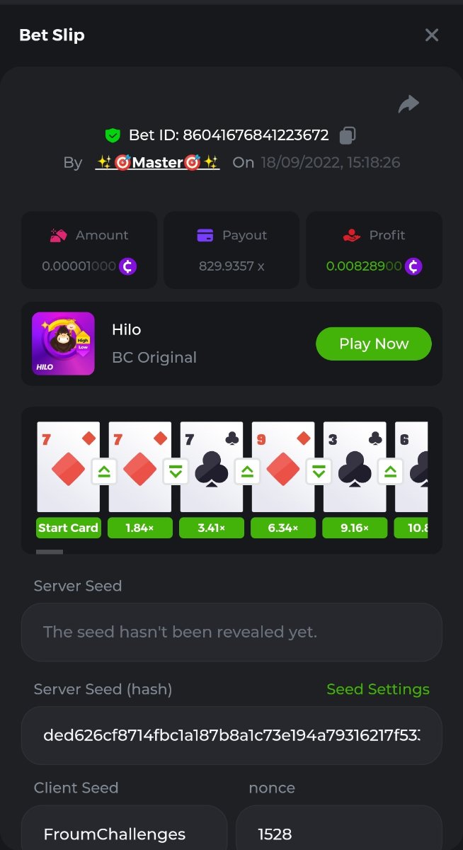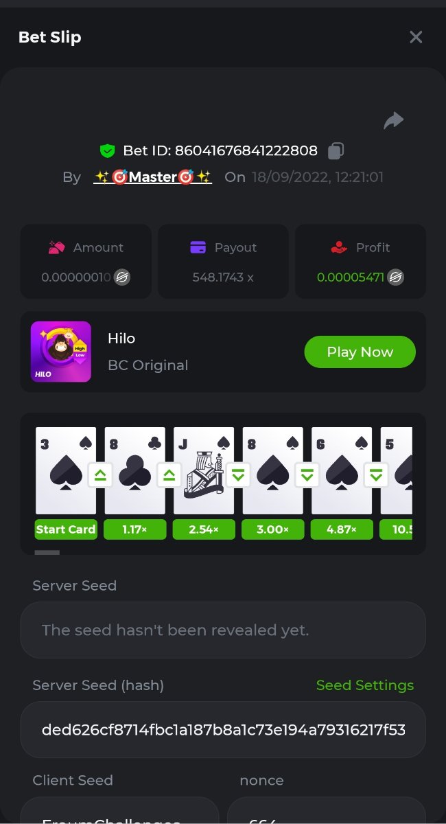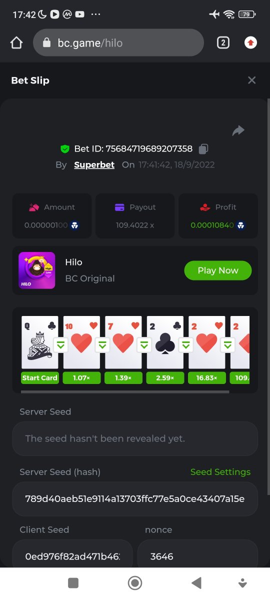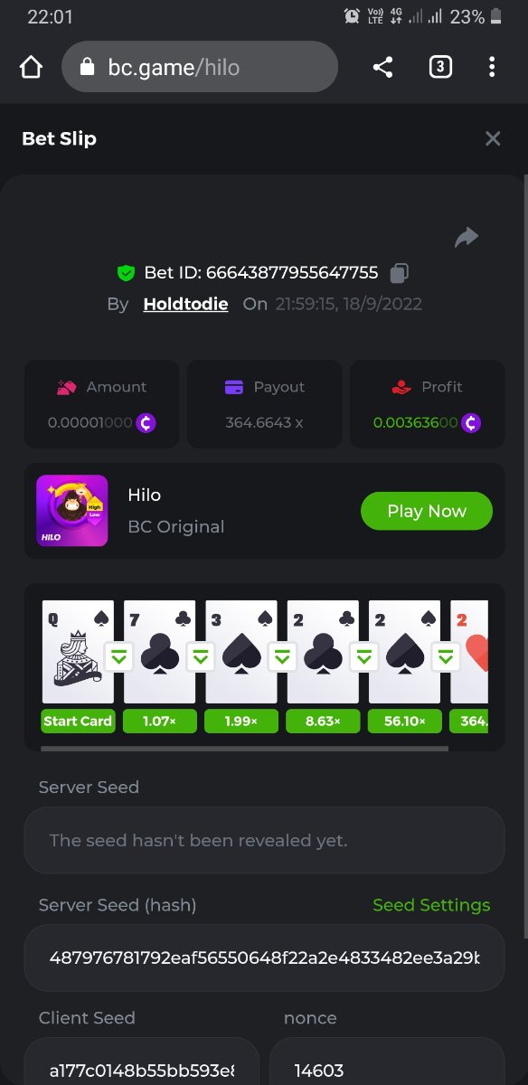 Black Tiger Posted September 18, 2022 Share Posted September 18, 2022 (edited) Read Carefully Before Start To Hunt Daily Challenges #18: HiLoHunt :Win the highest pay outMin Payout requirement 100xMin Level 4️Duration Starting : Now End time : 23.59 UTC Time How to Join? Only Post on BC.Game Telegram Official HEREMake screenshot + paste your bet link + UID or profile link To get bet link can check HERE Any coin allowedReward Prizes 1st Place....... $7 BCD2nd Place..... $5 BCD3rd Place...... $4 BCD 🎖4th Place......$3 BCD5th Place......$2 BCD 🏵 Winners will be announcing next day after Roll Point ========================== On Going Event $4,000 Top Tier Spinomenal Multiplier Battle! $2,500 Prestige Tower Legend Challenge #46 Soccer Top 5 league 100% cashback !#2 $250 BC.GAME SPORTS PARLAYS CHALLENGES #21 $500,000 Spinomenal's Grand Holiday Tournament TOUCHDOWN! NFL 50% Cashback ! #2 Forum Daily ChallengesDiscord Daily CHallengesTelegram Daily Challenges Edited September 18, 2022 by Black Tiger Link to comment Share on other sites More sharing options...