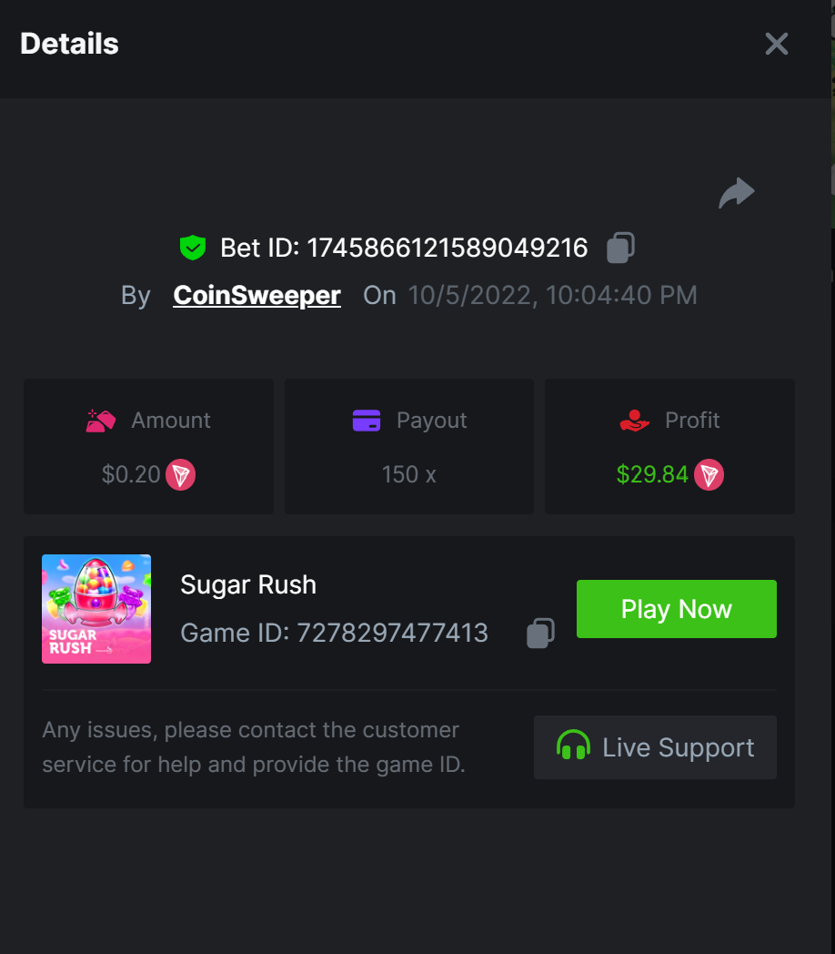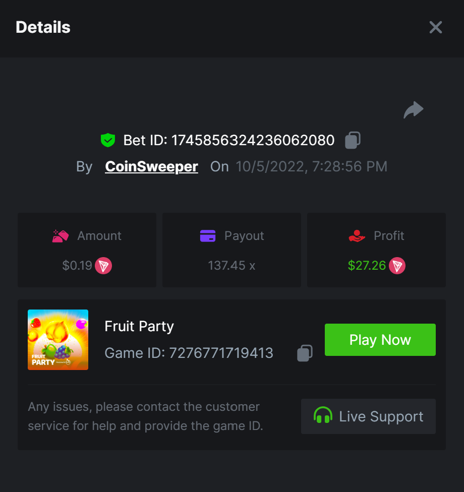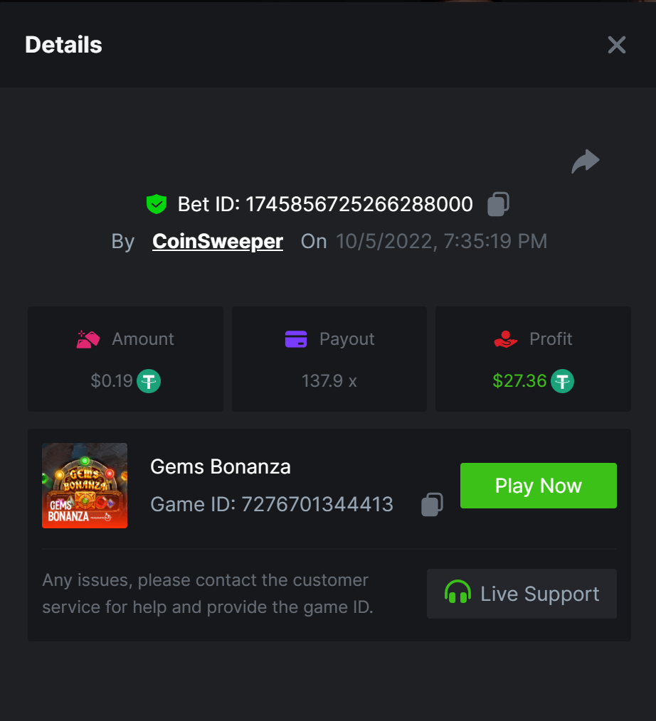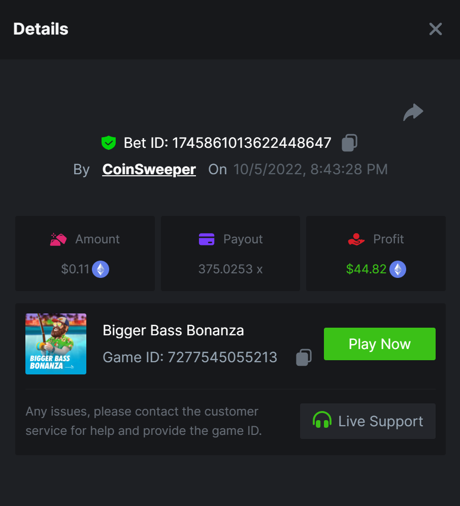CoinSweeper Posted October 5, 2022 Share Posted October 5, 2022 (edited) https://bc.game/#/sd/10UF8OAHLT0XLF - 375.0253x https://bc.game/#/sd/10UF45UTXGV6DV - 137x https://bc.game/#/sd/10UF4L9PN0PPUB - 115x https://bc.game/#/sd/10UF5LQ2USBBBN - 110x https://bc.game/#/sd/10UF9BZOYZUTCJ - 523.9 x https://bc.game/#/sd/10UFAK7HTDUWPF - 171.8x https://bc.game/#/sd/10UFBOWUNK3DAR - 95.4x https://bc.game/#/sd/10UF7SLOKLRTOZ - 50x - Bounty https://bc.game/#/sd/10UFBXW23LF9JN - 116.5x https://bc.game/#/sd/10UFCM2WB6JWUR - 190x https://bc.game/#/sd/10UFD5FS7F0QVN - 136.85 https://bc.game/#/sd/10UFDPDK1Q83KJ - 150x https://bc.game/#/sd/10UFE79T53LGR7 - 302.7x Edited October 5, 2022 by CoinSweeper Link to comment Share on other sites More sharing options...