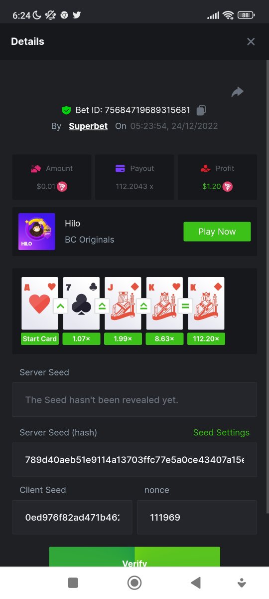 Black Tiger Posted December 23, 2022 Share Posted December 23, 2022 Read Carefully Before Start To Hunt Daily Challenges #108 : HILOHunt :Win the highest pay outMin Payout requirement 100xMin Level 4️Duration Starting : Now End time : 23.59 UTC Time How to Join? Make screenshot + paste your bet link + UID or Profile link Mini bet amount - 0.01$ Any coin allowedReward Prizes 1st Place....... $7 BCD2nd Place..... $5 BCD3rd Place...... $4 BCD 🎖4th Place......$3 BCD5th - 10th Place......$1 BCD 🏵 Winners will be announcing next day after Roll Point 2 Link to comment Share on other sites More sharing options...