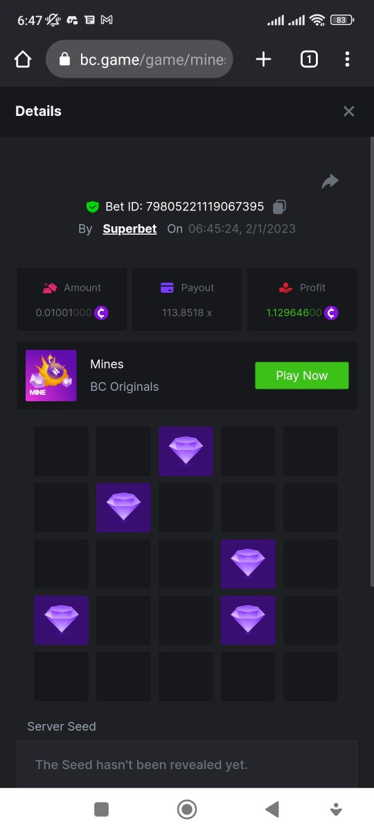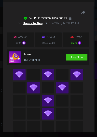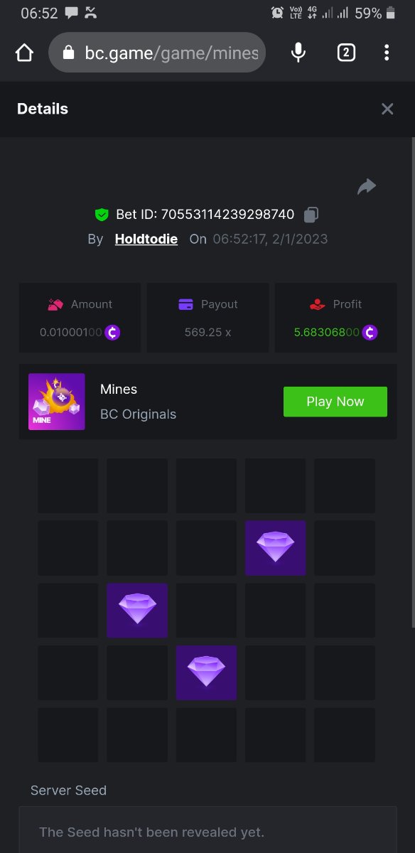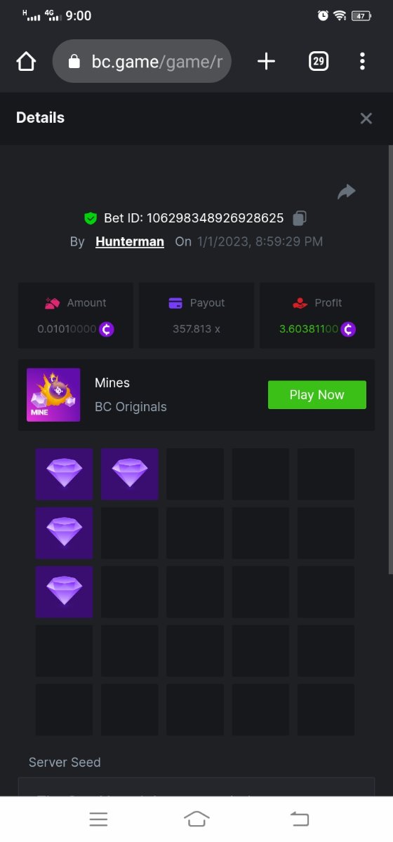 Black Tiger Posted January 1, 2023 Share Posted January 1, 2023 Read Carefully Before Start To Hunt Daily Challenges #117 : MineHunt :Win the highest pay outMin Payout requirement 100xMin Level 4️Duration Starting : Now End time : 23.59 UTC Time How to Join? Make screenshot + paste your bet link + UID or Profile Mini bet amount - 0.01$ Any coin allowedReward Prizes 1st Place....... $7 BCD2nd Place..... $5 BCD3rd Place...... $4 BCD 🎖4th Place......$3 BCD5th - 10th Place......$1 BCD 🏵 Winners will be announcing next day after Roll Point Link to comment Share on other sites More sharing options...