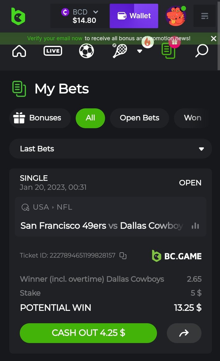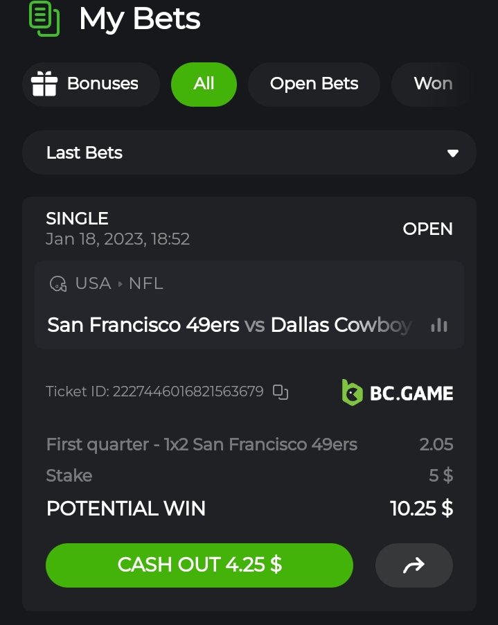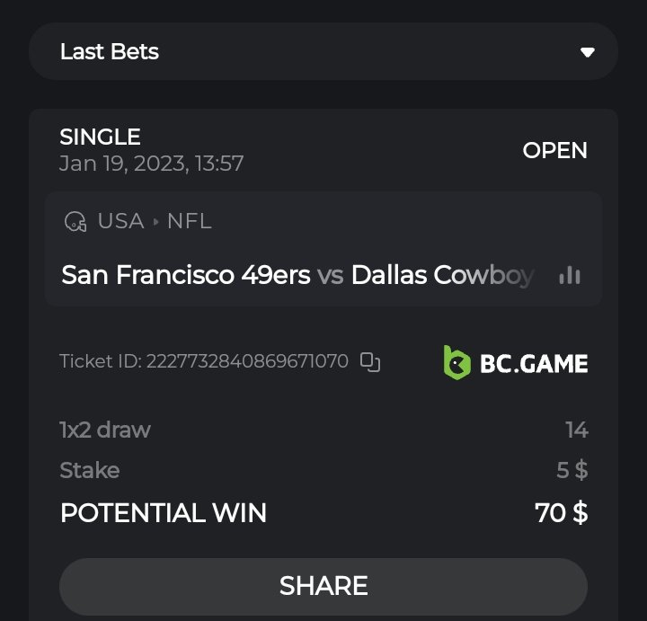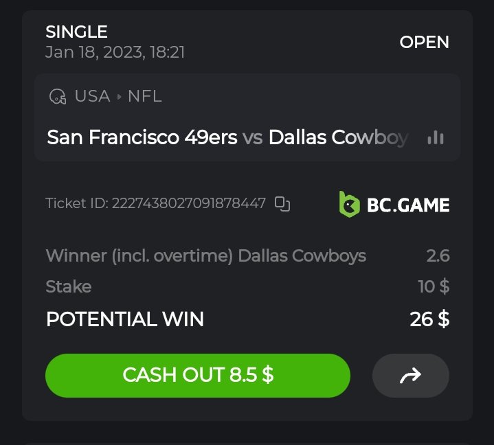This time, we provided a free bet ticket up to $20 to all users who bet on the NFL-selected match, “San Francisco 49ers VS Dallas Cowboys“, limited to the first 300 slots !!! First come, first serve based.