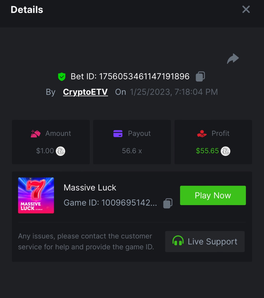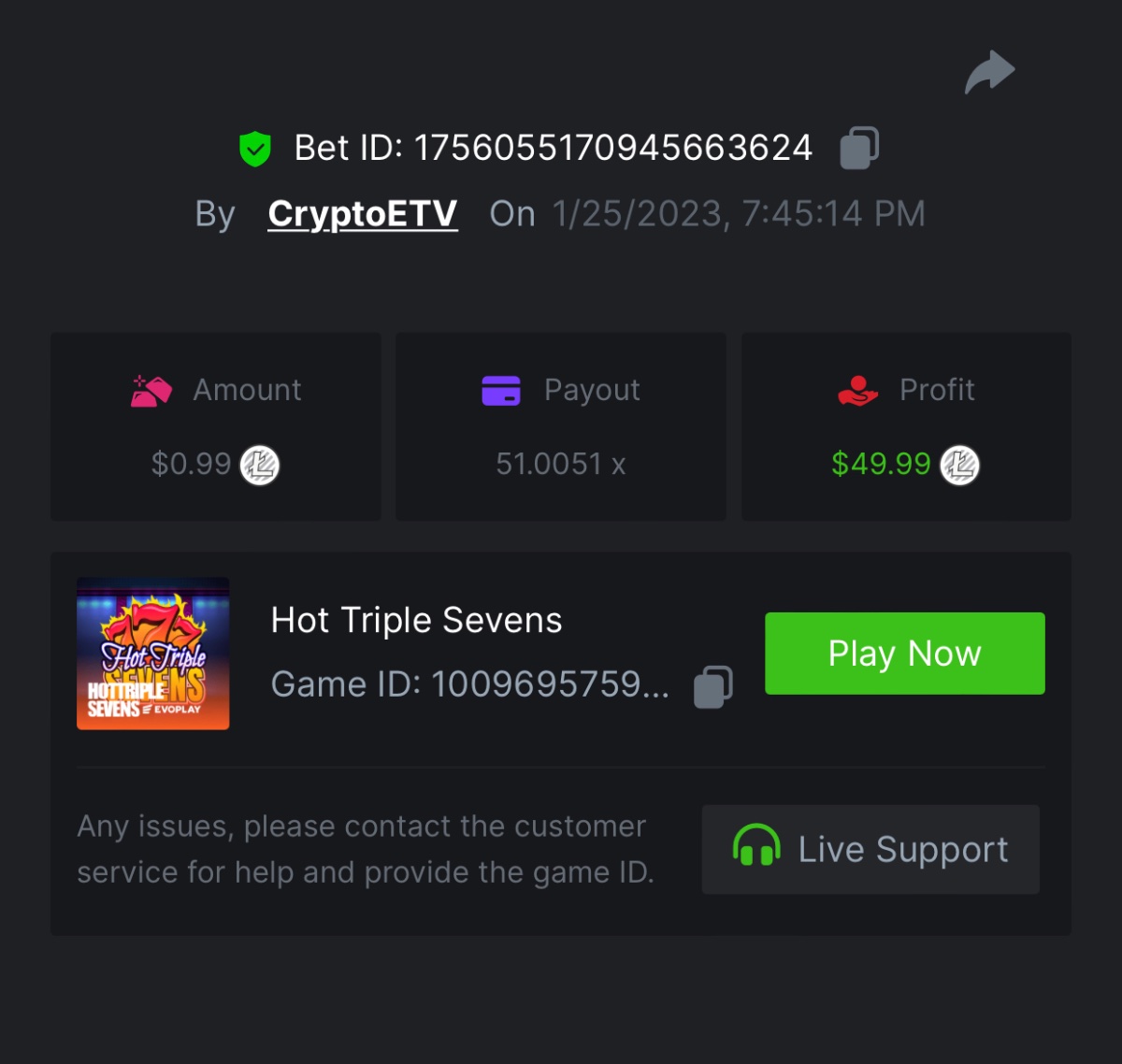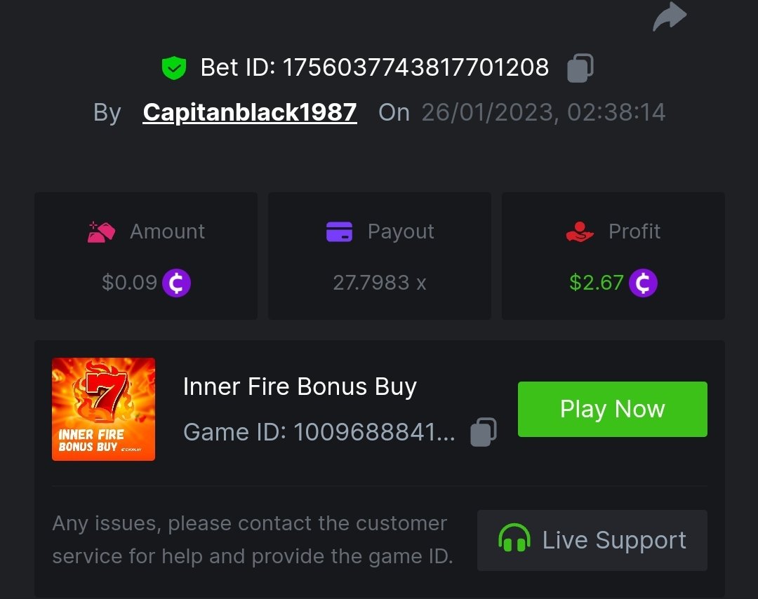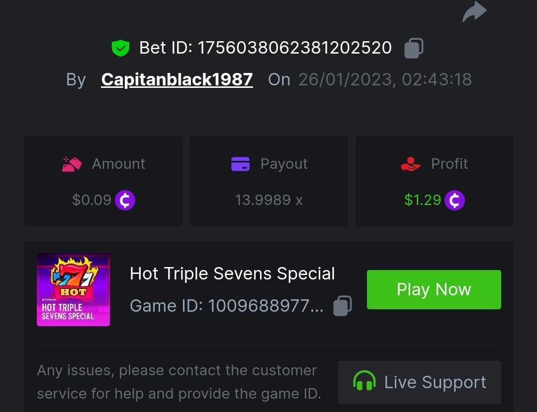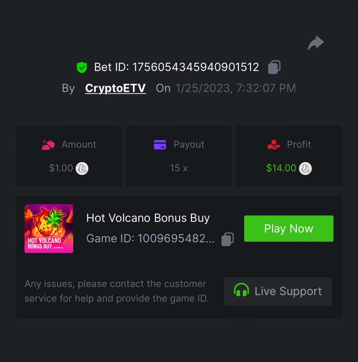 Saaho2022 Posted January 26, 2023 Share Posted January 26, 2023 Hot Triple Sevens Special - 71.0711xhttps://bc.game/#/sd/11267415LAZMDV Rueda De Chile Bonus Buy - 55.0551 https://bc.game/#/sd/11267I6PGN9YJ7 Patrick's Magic Field - 10.391x https://bc.game/#/sd/11267PK2O43383 Juicy Gems Bonus Buy - 31.031x https://bc.game/#/sd/112681G66MJV9V Inner Fire Bonus Buy - 28.9278x https://bc.game/#/sd/11268FS68L9IJ7 Hot Volcano Bonus Buy - 53.0531 https://bc.game/#/sd/1126AIG6Q1CKYB Gold of Sirens Bonus Buy 30.3303x https://bc.game/#/sd/1126AV2TWEJLLF Link to comment Share on other sites More sharing options...