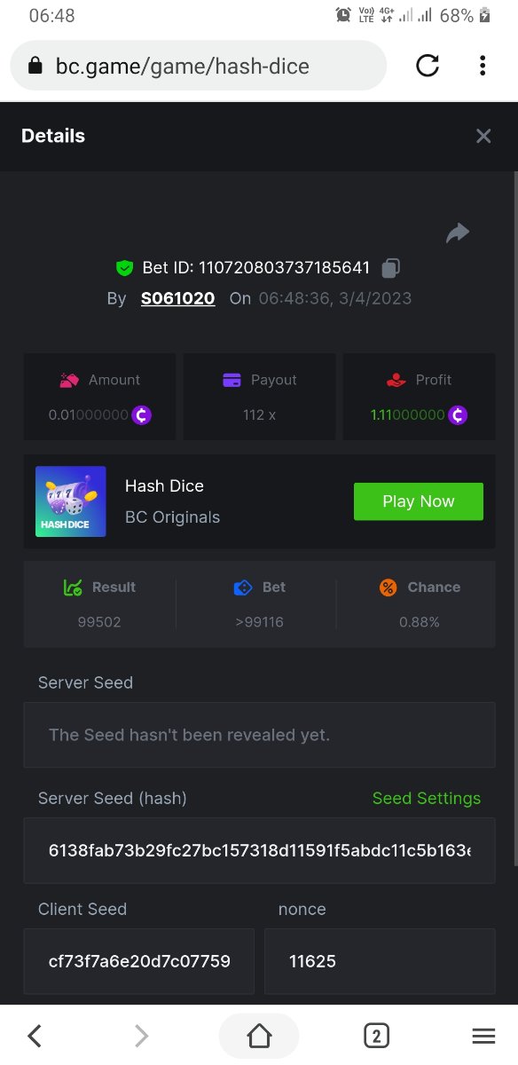Maksypro Posted April 2, 2023 Share Posted April 2, 2023 Read Carefully Before Start To Hunt Daily Challenges #193 HASH DICE Hunt : Win the highest pay out Min Payout requirement 100x Min Level 4 ๏ธDuration Starting : Now End time : 23.59 UTC Time How to Join? Make screenshot + paste your bet link + UID or Profile link Any coin, with min bet 0.01 USD is allowed (jb/bb/bcl not allowed) Reward Prizes 1st Place.....$7 BCD 2nd Place.....$5 BCD 3rd Place.....$4 BCD 4th Place.....$3 BCD 5th Place.....$2 BCD ๐ต Winners will be announcing next day after Roll Point! Link to comment Share on other sites More sharing options...