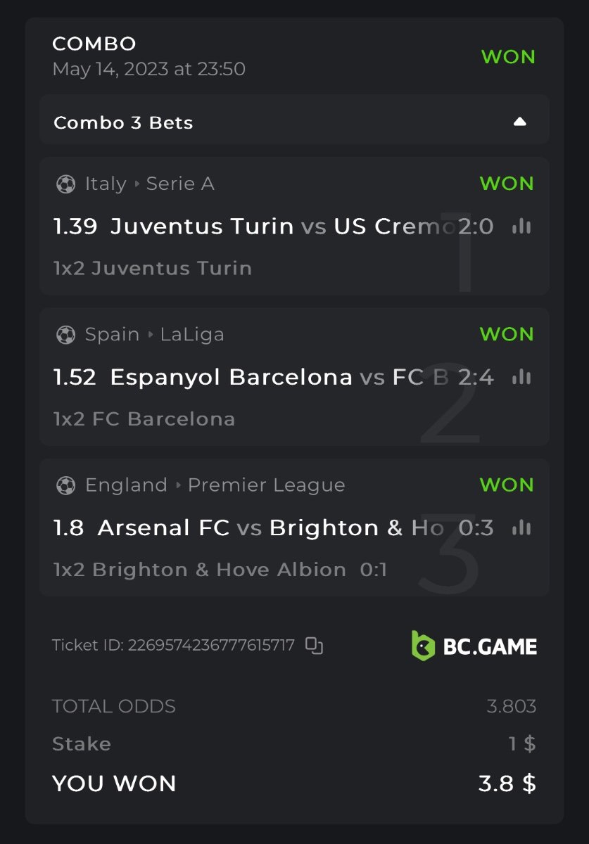 Event Team BCGame_Maxim Posted May 25, 2023 Event Team Share Posted May 25, 2023 Thank you for participating in our event. A bonus reward was sent directly to the BCGAME accounts of 25 qualified participants. Send me a message or contact live support directly if you are having trouble. The fun doesn't stop here! Keep an eye out for more events coming your way! Rank UserID Username Total Scores Rewards 1 7709704 Mariahapos 500.531 $200.00 2 1188516 sloth 211.187 $100.00 3 5377319 ezepg 105.4024 $50.00 4 1628772 TNQ 40.711 $20.00 5 3877293 Nattasya 23.95 $20.00 6 6284675 Shock Kun 18.84 $20.00 7 3207161 대박 14.728 $20.00 8 1271672 BC_CryptoAngel 13.38 $20.00 9 1047096 damned1979 12.182 $20.00 10 228134 Raaaaa 11.9 $20.00 11 7778120 KaddangKissing 9.684 $11.00 12 8822268 syamo8049 9.32 $11.00 13 1045506 Munrraxx 8.094 $11.00 14 2691204 Reyhanee 7.307 $11.00 15 7861202 tsunkooo 7.206 $11.00 16 1409824 Clemerson Coelho 6.634 $11.00 17 349775 ◉✿◉𝕛𝕒𝕫𝕫◉✿◉ 6.632 $11.00 18 7476607 JokerKwaii 5.503 $11.00 19 6153041 Negri2O18 4.633 $11.00 20 4465231 Lenny Rosas 4.571 $11.00 21 390654 SMach-B 4.257 $11.00 22 963358 MVP-PQ 3.803 $11.00 23 1196308 Master 3.791 $11.00 24 2981117 Jonny590 3.25 $11.00 25 3473841 magicckk 3.175 $11.00 Bounty Winners Bounty UserID Username Odds Rewards 1 7709704 Mariahapos 60.138 $75.00 Link to comment Share on other sites More sharing options...