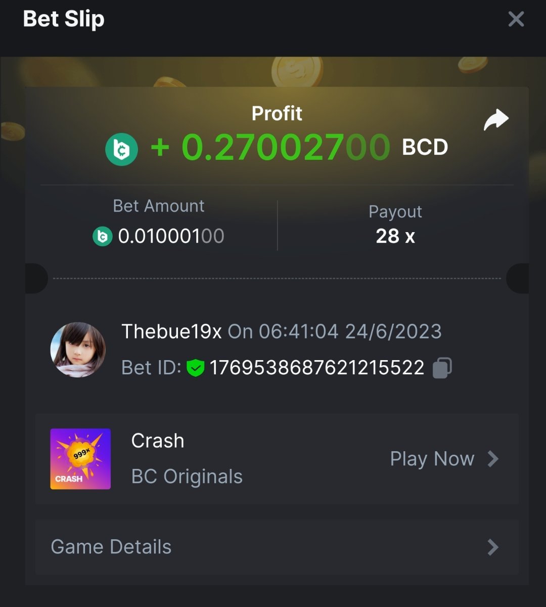 Maksypro Posted June 23, 2023 Share Posted June 23, 2023 (edited) Read Carefully Before Start To Hunt Forum Daily Challenges #275 Crash Hunt : Win the highest pay out Min Payout requirement 20x Min Level 4 ๏ธDuration Starting : Now End time : 23.59 UTC Time How to Join? Make screenshot + paste your bet link + UID or Profile link Any coin, with min bet 0.01 USD is allowed (jb/bb/bcl not allowed) Reward Prizes 1st Place.....$7 BCD 2nd Place.....$5 BCD 3rd Place.....$4 BCD 4th Place.....$3 BCD 5th Place.....$2 BCD ๐ต Winners will be announcing next day after Roll Point! Edited June 23, 2023 by Maksypro Link to comment Share on other sites More sharing options...