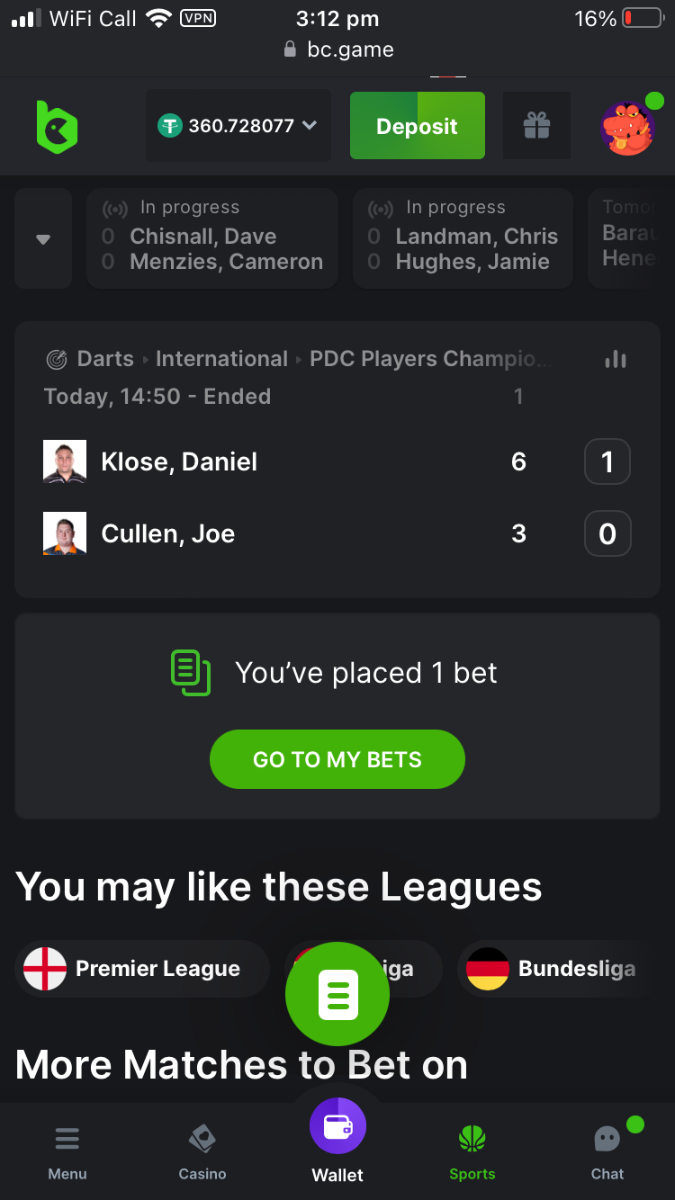 Below is a wager that I placed and the match was not even played but somehow resulted??? Made a support ticket saying they will look into and can take 72 hours???? All you legit have to do is look at the official darts page and see the guy I bet on is not even playing in that tournament.
