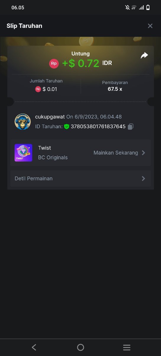 5th place . . . .  2$ BCD  - Cukupgawat - 67.5x  0.72