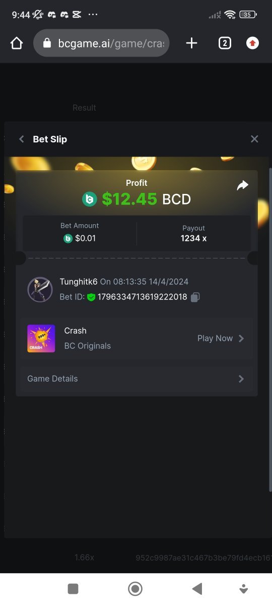 Moderator Giandreas Posted April 14, 2024 Moderator Share Posted April 14, 2024 Read Carefully Before Start To Hunt Forum Daily Challenges #570Hunt : Crash Win the highest pay out Min Payout : 20x Min Level 10 ️Duration Starting : Now End time : 23.59 UTC Time How to Join? Make screenshot + paste your bet link + UID or Profile link Any coin, with min bet 0.01 USD is allowed (jb/bb/bcl not allowed) Reward Prizes 1st Place.....$7 BCD 2nd Place.....$5 BCD 3rd Place.....$4 BCD 4th Place.....$3 BCD 5th Place.....$2 BCD 🏵 Winners will be announcing next day after Roll Point! Link to comment Share on other sites More sharing options...