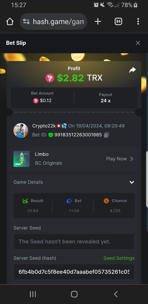 Moderator Giandreas Posted April 19, 2024 Moderator Share Posted April 19, 2024 Read Carefully Before Start To Hunt Forum Daily Challenges #575Hunt : Limbo Win the highest pay out Min Payout : 20x Min Level 10️Duration Starting : Now End time : 23.59 UTC Time How to Join? Make screenshot + paste your bet link + UID or Profile link Any coin, with min bet 0.01 USD is allowed (jb/bb/bcl not allowed)Reward Prizes 1st Place.....$7 BCD 2nd Place.....$5 BCD 3rd Place.....$4 BCD 4th Place.....$3 BCD 5th Place.....$2 BCD 🏵 Winners will be announcing next day after Roll Point! 1 Link to comment Share on other sites More sharing options...