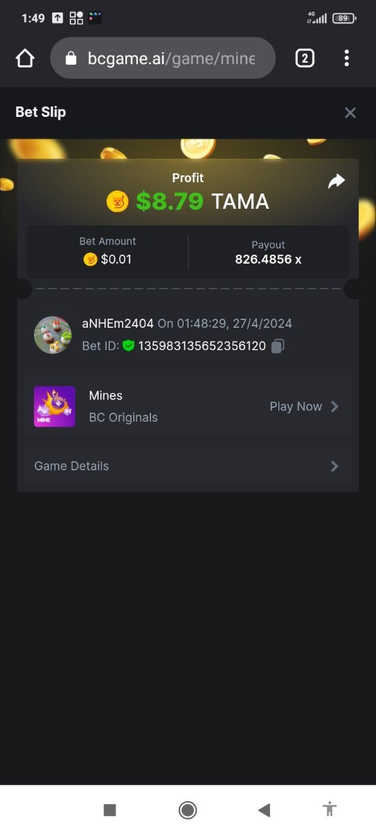 Moderator Giandreas Posted April 26, 2024 Moderator Share Posted April 26, 2024 Read Carefully Before Start To Hunt Forum Daily Challenges #582Hunt : Mines Win the highest pay out Min Payout : x50 Min Level 10️Duration Starting : Now End time : 23.59 UTC Time How to Join? Make screenshot + paste your bet link + UID or Profile link Any coin, with min bet 0.01 USD is allowed (jb/bb/bcl not allowed)Reward Prizes 1st Place.....$7 BCD 2nd Place.....$5 BCD 3rd Place.....$4 BCD 4th Place.....$3 BCD 5th Place.....$2 BCD 🏵 Winners will be announcing next day after Roll Point! 3 Link to comment Share on other sites More sharing options...