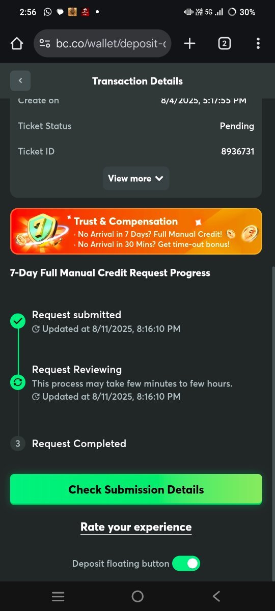 Ggqubcxfwpac Posted August 13 Share Posted August 13 According to your trust and compansation policy.Under second point "7-Day Full Guarantee:If your deposit hasn’t arrived within 7 days of submission, the system will automatically issue full compensation." I user id-34743022 should be provided with full compansation with immediate effect since I have completed all certeria mentioned in term and condition for manual compansation. It's already 7days +48hours after submission of proofs. Please look into this matter as soon as possible. I have contacted "LIVE SUPPORT" but their auto generated text don't resolve the issues. Status: Under Review Order ID: F-1839525344878853374 Credited Amount: 0 INR Order Amount: 10000 INR Txid: CK202...47232 Create on: 8/4/2025, 5:17:55 PM Link to comment Share on other sites More sharing options...