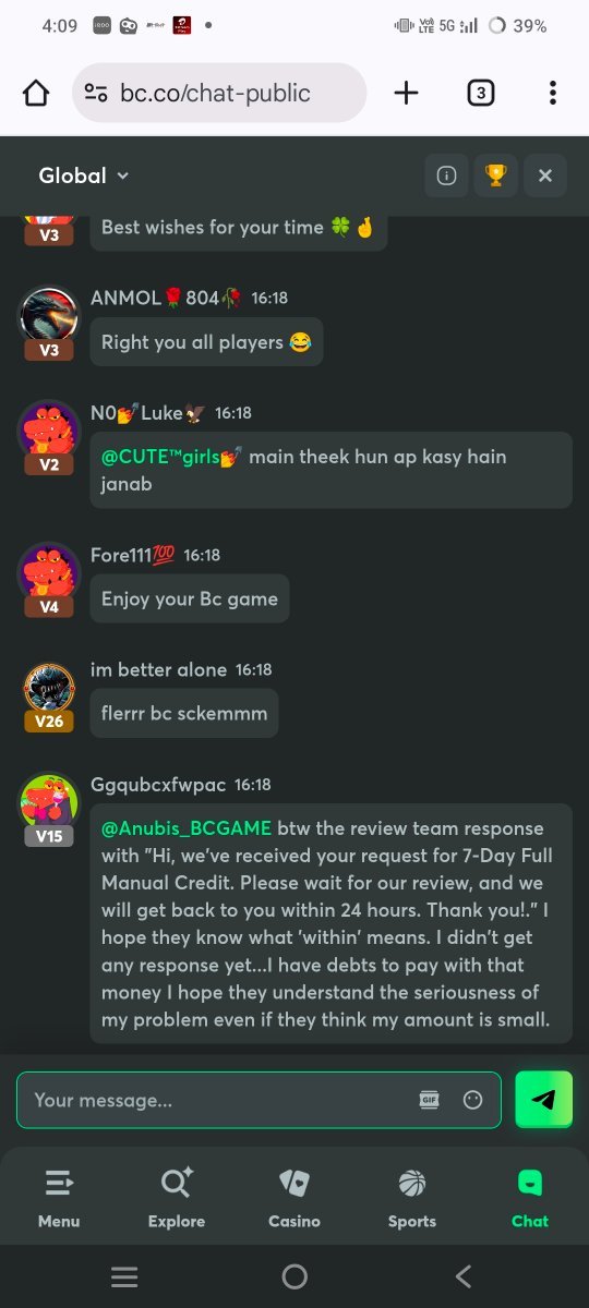 Bbykufadyvcc Posted July 26 Share Posted July 26 On 5/1/2025 at 5:04 AM, MaryBCGAME said: Hello @JAAT_RISKY, Thank you for sharing your concern with us. We truly understand how frustrating this situation must be, and we want to make sure you get the proper support. However, please note that this forum is not the appropriate place to handle deposit or withdrawal issues. For your security and to ensure a faster resolution, we kindly ask you to: Reach out directly to our Support Team via Live Chat on the BC.Game site. Continue or open a new support ticket through the official Support Center. You may also share your issue through our official BC.Game Discord support channel, where the appropriate team can follow up. Please understand that transaction-related issues can only be resolved by our internal support team through official channels. We appreciate your patience and hope your issue gets resolved as soon as possible. Thank you for your understanding! Link to comment Share on other sites More sharing options...