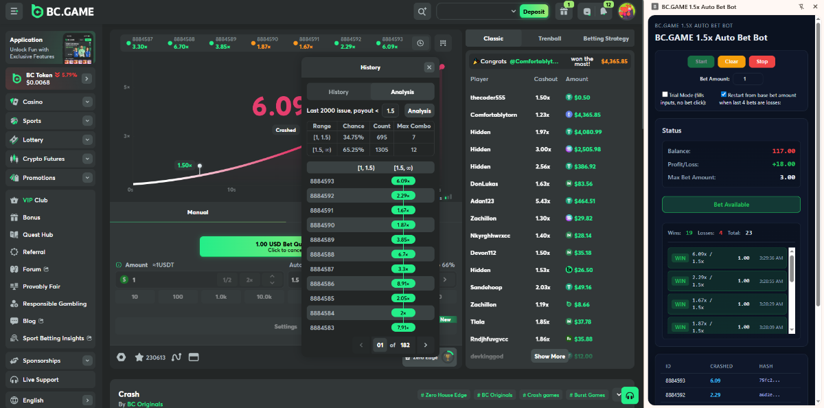 I have built bc.game/game/crash auto 1.5x bet bot.