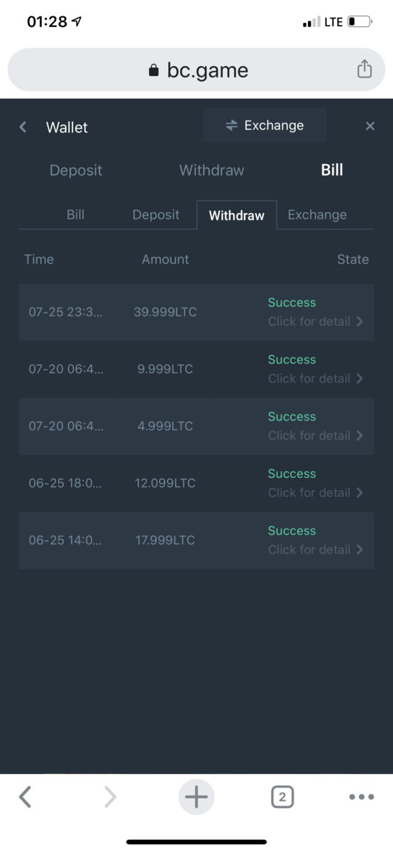 As always it’s a pleasure doing business with yah! Slots comes thru again... lol... hopefully everyone got a bit of the LTC rain/drops I sent out. Not a bad run from 2-50 total LTC W/D 40 and splurged the rest on tips/rain lol . Lol not bad at all.... GL.