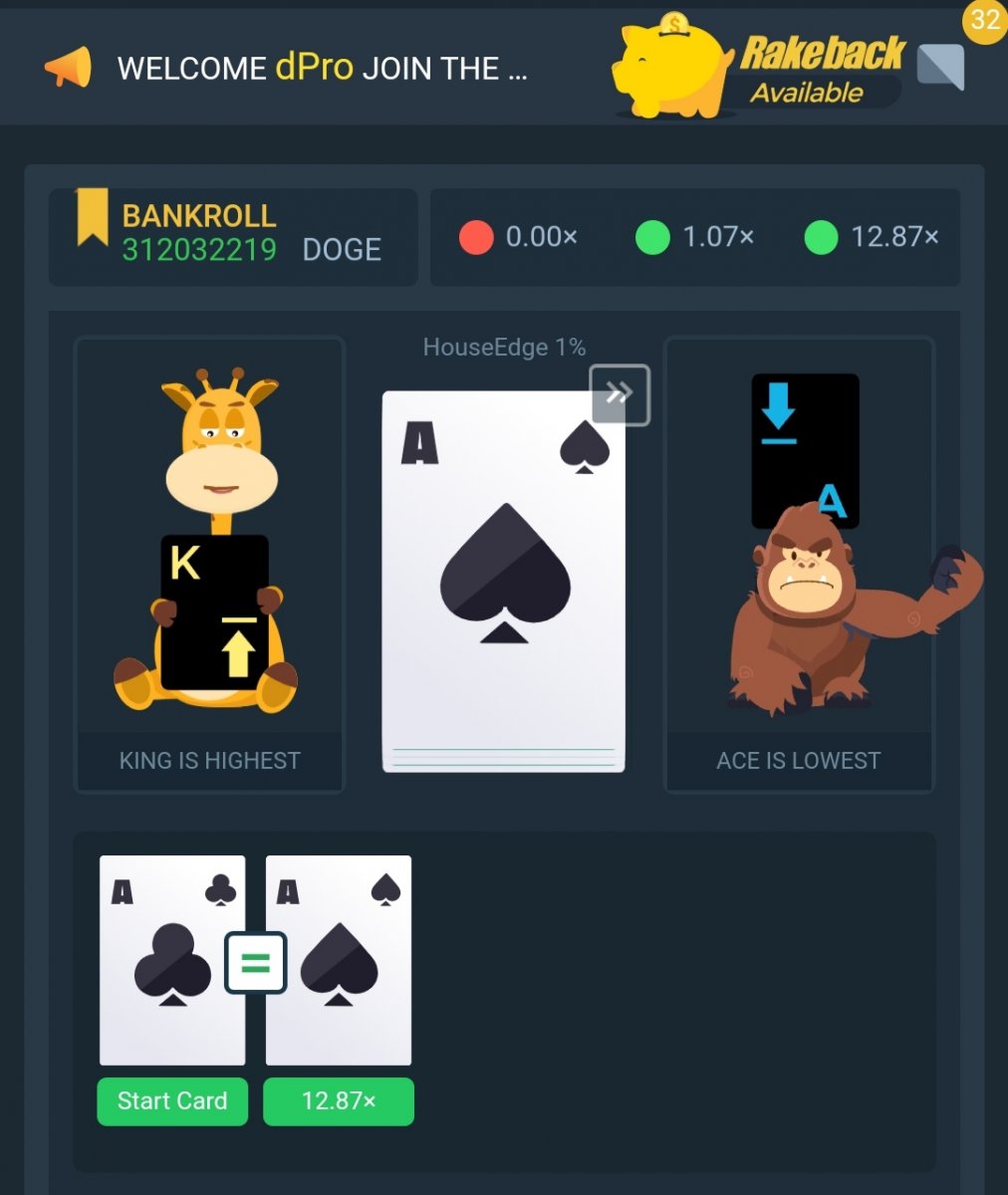 If you guess right, you will get the corresponding payout. You can choose to claim the win and stop this round or continue guessing the next card.
