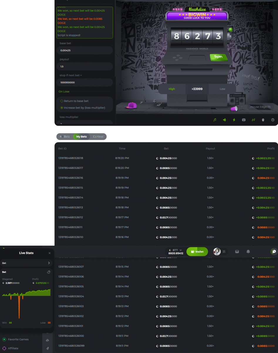 From time to time system stop auto script on classic dice and tells me "need user login". I think to stop playng now and wait when support team fix this shit. 😡