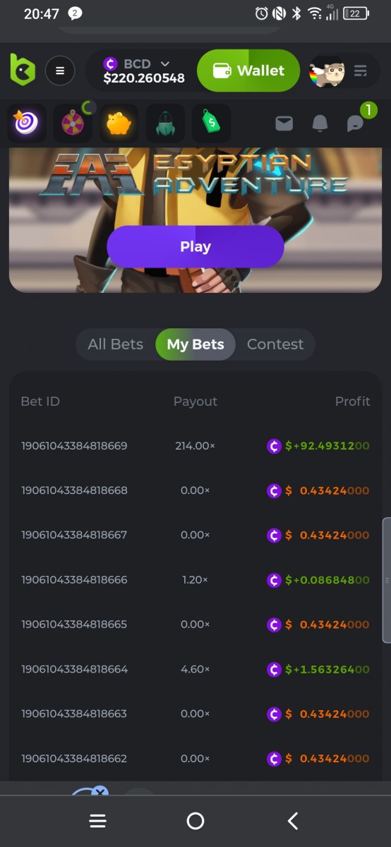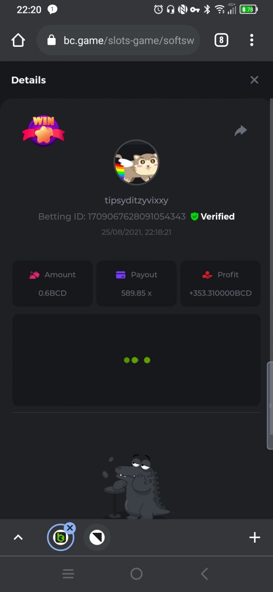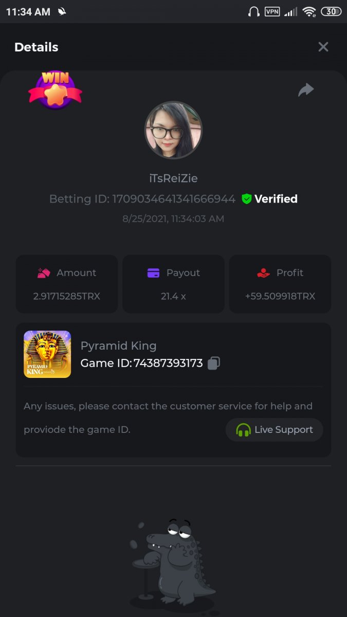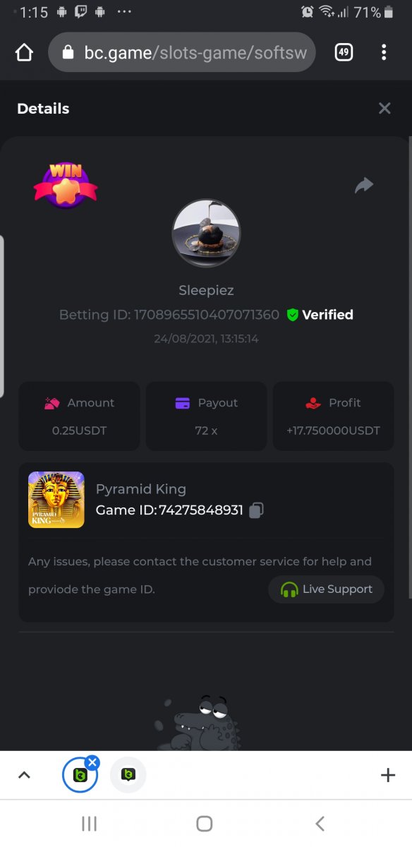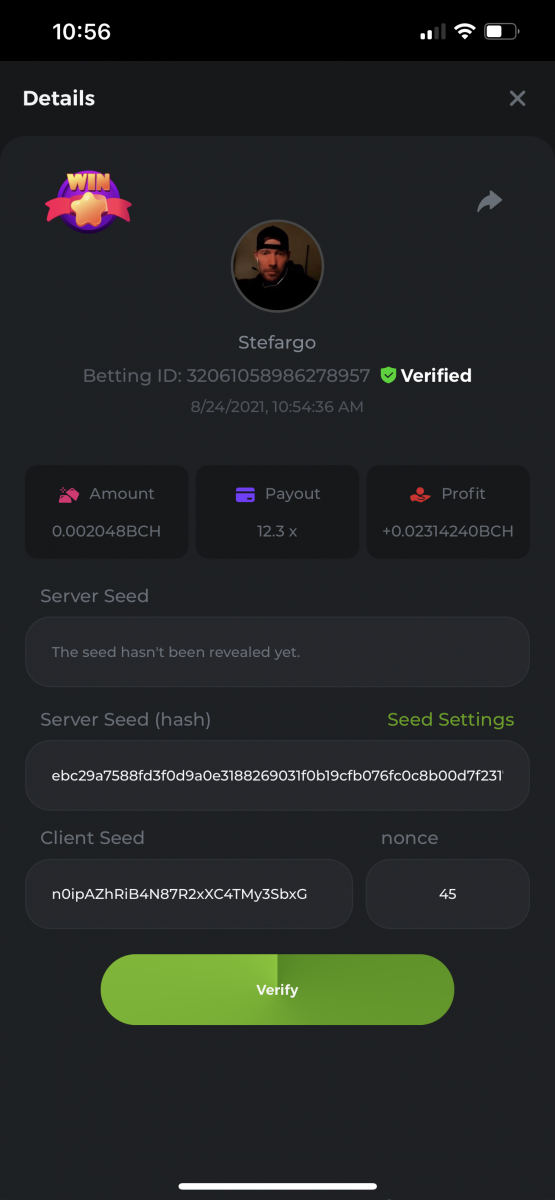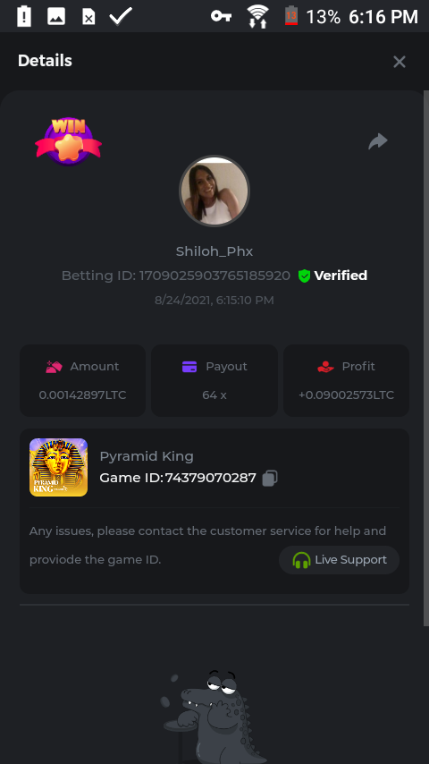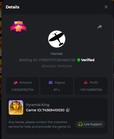 • Upload a screenshot of your win by clicking on the game ID to share all the bet details.