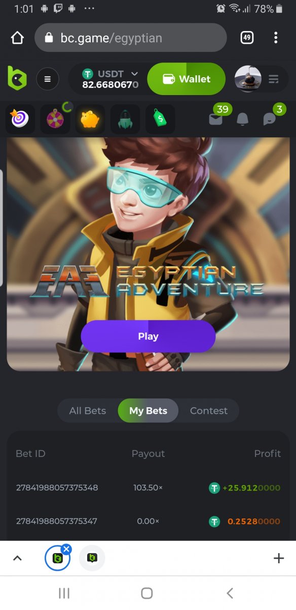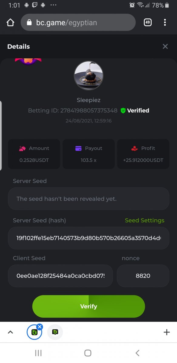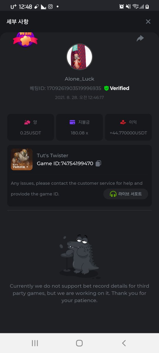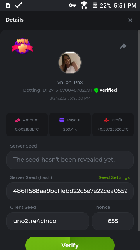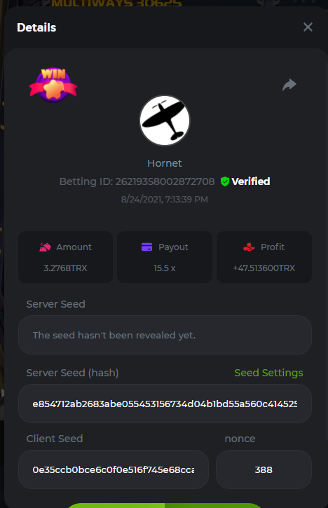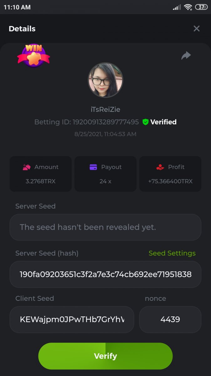 • Upload a screenshot of your win by clicking on the game ID to share all the bet details.