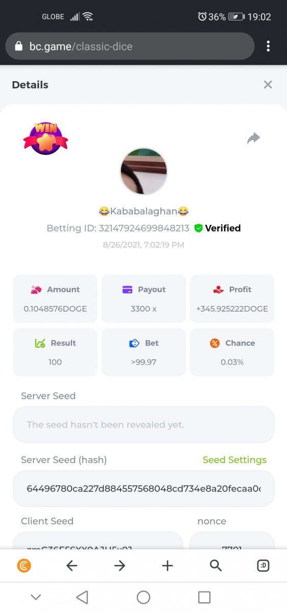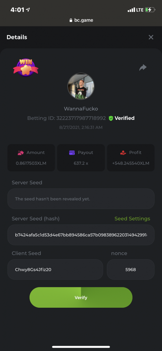 Verified Posted August 27, 2021 Share Posted August 27, 2021 Betting ID: 32203497281683473 Egyptian - 267.9x Betting ID: 1709133047020589319 Twister - 177.44x Link to comment Share on other sites More sharing options...