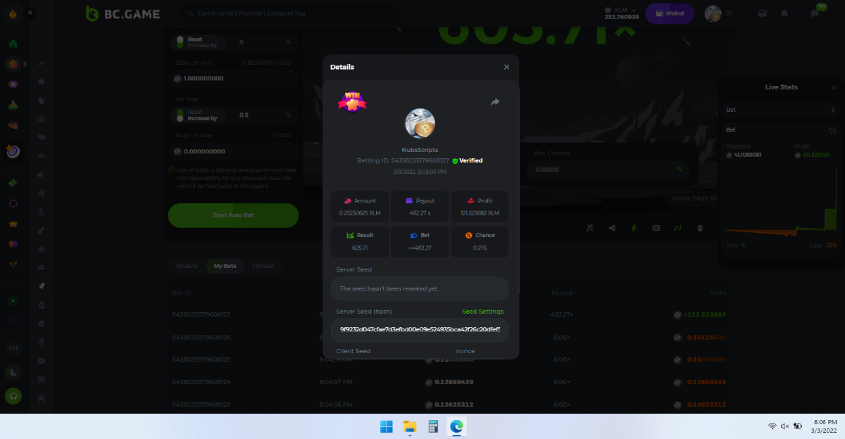 You don't need to keep betting a normal bet when nothing is around. Bet minimum amount then. If you miss a b1899173745_2rollsbeforehitchangedbet.thumb.png.e83cf2c1fc8b9932322f65fd7080d795.png1783190445_4rollsbeforehitchangepayout.thumb.png.e0e8a69319f9db75b404bea94a9693b5.pngig Payout, no problem, it will come around again. If it doesn't come when triggers are met then take the small loss, reduce bet and try again. By minimizing the losses, the profit becomes bigger.