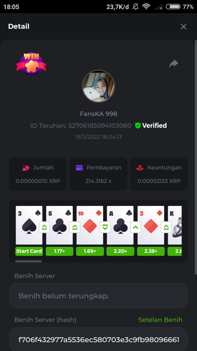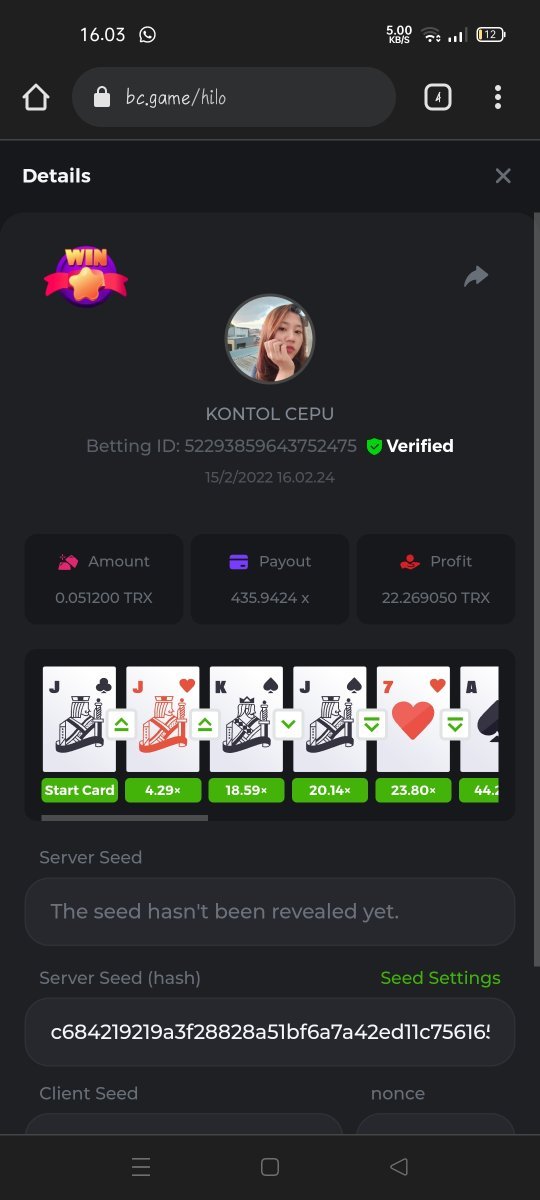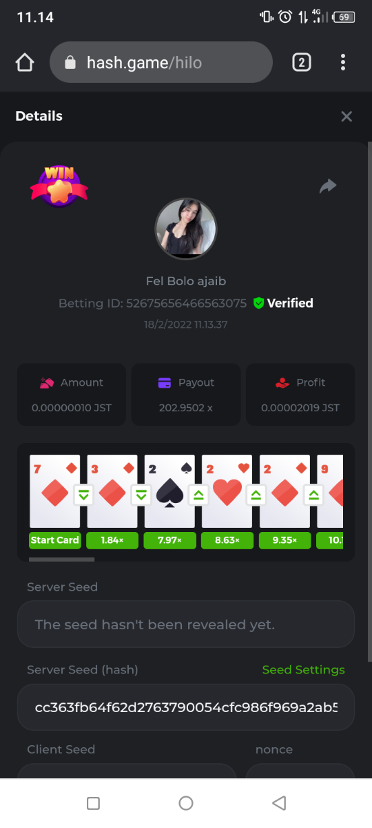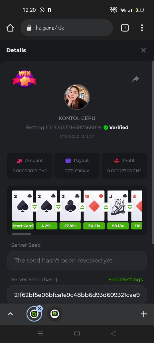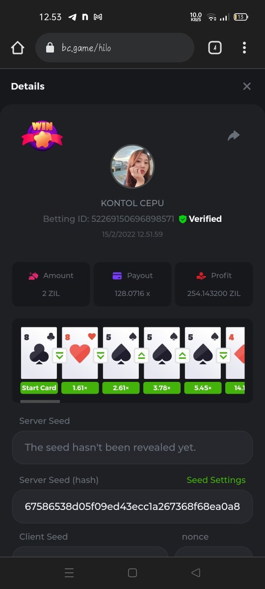 Wiro212sableng Posted February 14, 2022 Share Posted February 14, 2022 King Hilo weekly challenge Periode 11-18 Februari2022 Challenge dengan mencari total Raihan poin tertinggi di game Hilo Peraturan permainan: - Koin bebas selain JB coin Sistem point: Payout 100x atau lebih : 10 point Payout 200x atau lebih : 20 point Payout 300x atau lebih : 30 point Payout 400x atau lebih : 40 point Dan seterusnya payout kelipatan 100 di hitung 1 dan akan dikalikan 10 point. Misal : payout 1455x : 14 x 10 point : 140 point Post username kalian dengan reply post di bawah Post screenshot betid kalian di sini, dan edit post untuk memasukan screenshot bet id selanjutnya User level 3 ke atas no multi account Koin bebas selain bj koin Khusus user Indonesia Post screenshot betidnya di forum Bet berlaku mulai tgl 15 Februari 2022 jam 06.05 am dan max post 24 jam dari semenjak bet di buat. Challenge berakhir Jumat, 18 Februari pukul 19.00 pm Hadiah: 1. 12 bcd shitlink 2. 8 bcd shitlink 3. 5 bcd shitlink 4-10. @2 bcd shitlink 10-15 @1 bcd shitlink Keputusan juri tidak dapat di ganggu gugat Link to comment Share on other sites More sharing options...