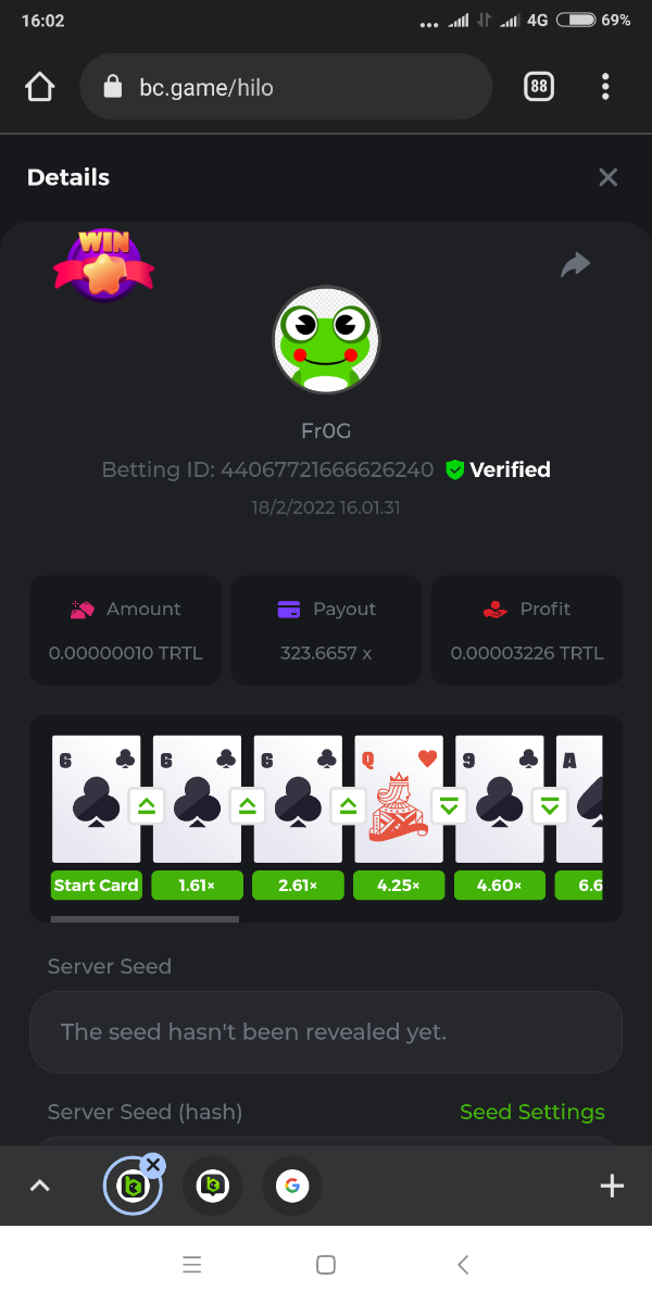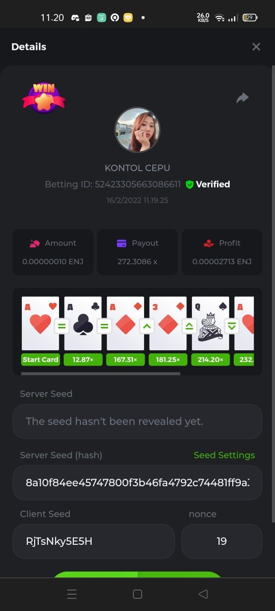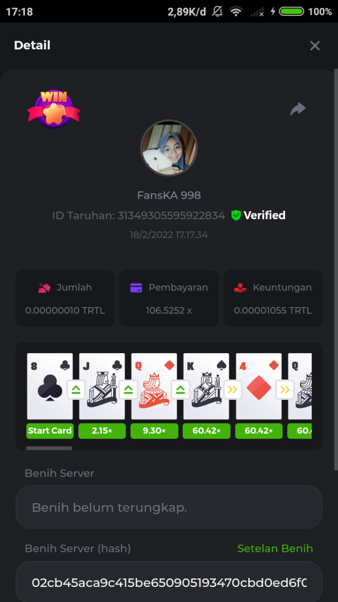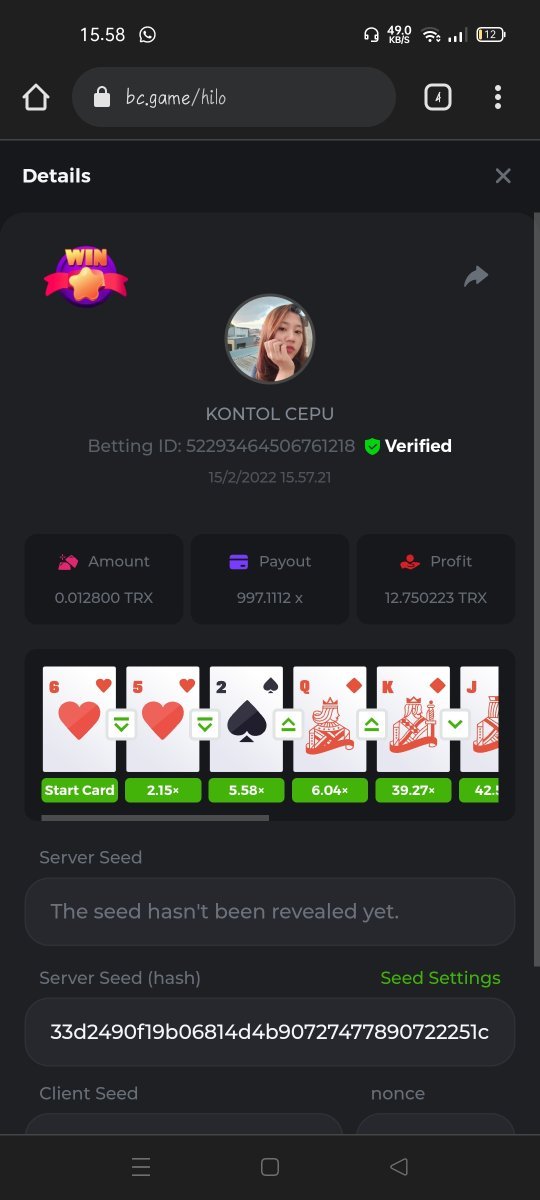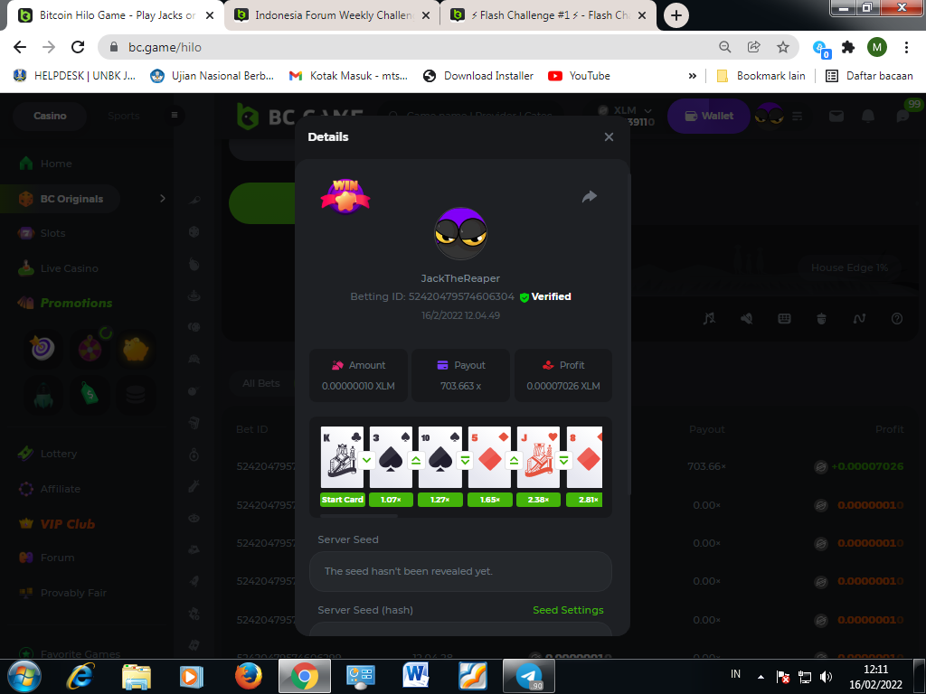 Wiro212sableng Posted February 14, 2022 Share Posted February 14, 2022 King Hilo weekly challenge Periode 11-18 Februari2022 Challenge dengan mencari total Raihan poin tertinggi di game Hilo Peraturan permainan: - Koin bebas selain JB coin Sistem point: Payout 100x atau lebih : 10 point Payout 200x atau lebih : 20 point Payout 300x atau lebih : 30 point Payout 400x atau lebih : 40 point Dan seterusnya payout kelipatan 100 di hitung 1 dan akan dikalikan 10 point. Misal : payout 1455x : 14 x 10 point : 140 point Post username kalian dengan reply post di bawah Post screenshot betid kalian di sini, dan edit post untuk memasukan screenshot bet id selanjutnya User level 3 ke atas no multi account Koin bebas selain bj koin Khusus user Indonesia Post screenshot betidnya di forum Bet berlaku mulai tgl 15 Februari 2022 jam 06.05 am dan max post 24 jam dari semenjak bet di buat. Challenge berakhir Jumat, 18 Februari pukul 19.00 pm Hadiah: 1. 12 bcd shitlink 2. 8 bcd shitlink 3. 5 bcd shitlink 4-10. @2 bcd shitlink 10-15 @1 bcd shitlink Keputusan juri tidak dapat di ganggu gugat Link to comment Share on other sites More sharing options...