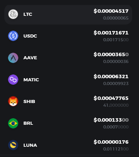Below is an example, these are just 7 different cryptocurrencies in my wallet with a really low balance (now I'm talking like there are those with a high balance LoL 😄). There's probably tens of them..