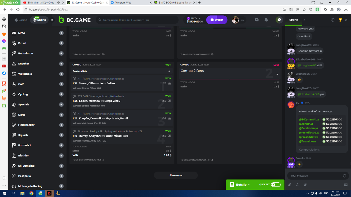 Moderator Mat Posted June 5, 2022 Moderator Share Posted June 5, 2022 BC.GAME SPORTS PARLAYS CHALLANGES #7 Start: 06, June 00:00 UTC Ends: 12, June 23:59 UTC Hello, ladies and gentleman! Sports Parlay Challenges #5! With a prize pool of $150, the Top 5 takes home a grand prize, and the remaining $40 will be split among all other entrants! What is the challenge? Place a Sports Parlay/Combo Bet to qualify for the challenge Only 1 parlay per match. A parlay consists of two or more sports bets on a single ticket with a higher multiplier. The ODDS for each game will be added up and counted as total points. Minimum VIP No Minimum VIP Level Minimum payment There is no minimum multiplier, however, only the top 5 winning parlay multipliers will win the grand prize! Minimum bet size Equivalent to US$ 0.50 Eligible currencies All cryptocurrencies are eligible (except JB) Rewards available 1st place.......$45 2nd place.....$30 3rd Place...... $20 4th Place...... $10 5th Place...... $5 The remaining $40 will be split among all other participants who meet the minimum requirements and minimum stake. How to enter: To participate, post your Ticket ID, along with your Parlay link, as a reply to this thread as follows: Link bet: https://bc.game/sports/?bt-path=%2F%3FbtBookingCode%3D561A9D1 + Ticket ID 2126602890796736992 If you don't know how to get your sports betting link, go here! Along with the screenshot of your accumulated ticket. Ticket ID 2126602890796736992 If a selection results in a void or push, the bet will remain eligible as long as it remains equal to or greater than a triple bet and meets the odds requirements. Bets withdrawn will not be counted. Hedging is strictly not allowed Please combine all your hits into a SINGLE post. Edit your existing post to get additional hits, don't create a new post. Bets must be placed during the time window specified above. This thread will automatically lock when the time period ends. One (1) entry per family. If someone finds multiple prizes, they will be disqualified from the challenge as well as all future challenges. Failure to follow the instructions will result in the cancellation of your submission. By entering this challenge, you acknowledge that BC.Game has final decision rights over results and placement. All prizes will be paid out in BCD within 72 hours of completing the challenge. Link to comment Share on other sites More sharing options...