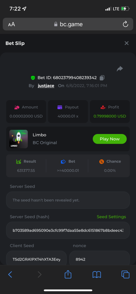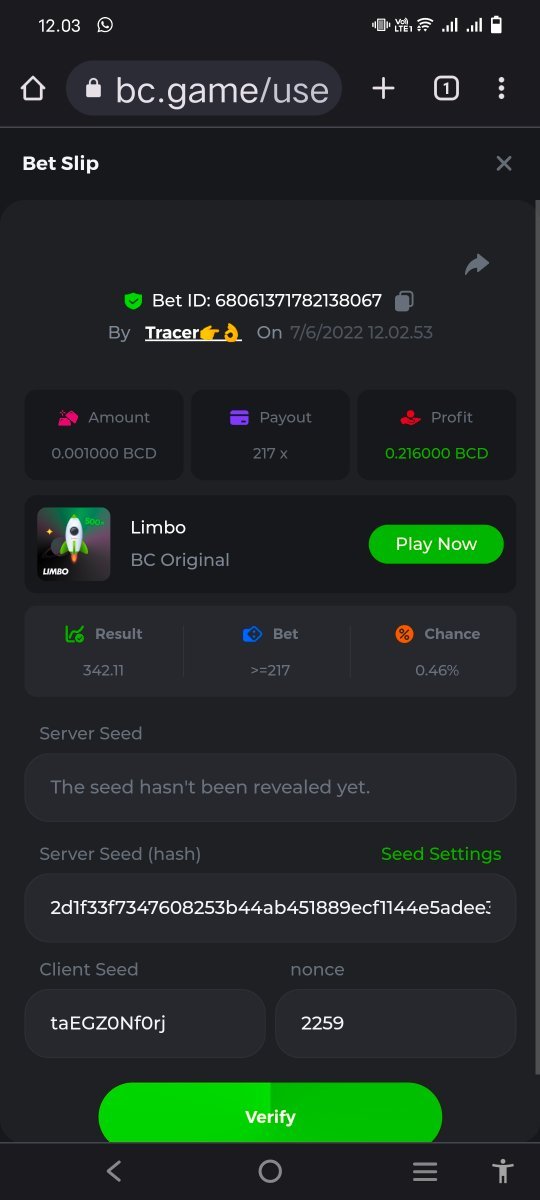 BCgame777 Posted June 7, 2022 Share Posted June 7, 2022 14 hours ago, Black Tiger said: Roll Hunt Start Date6.06.2022 End Date10.06.2022 Game Limbo Pay out200 x and over Coin any coin ( don't accept Jb ย ย ย ย ย ย ย ย ย ย ย ย ย & GB) Amount any amount 5$ 4$ 3$ 2$ 1$ Shit link We will choice high pay out Don't used multi acc Don't ask for tip Don't use old photo and other ย player's photo โDon't ment 2 times.If you ment 2 times,I will choice first ment โ ย Link to comment Share on other sites More sharing options...