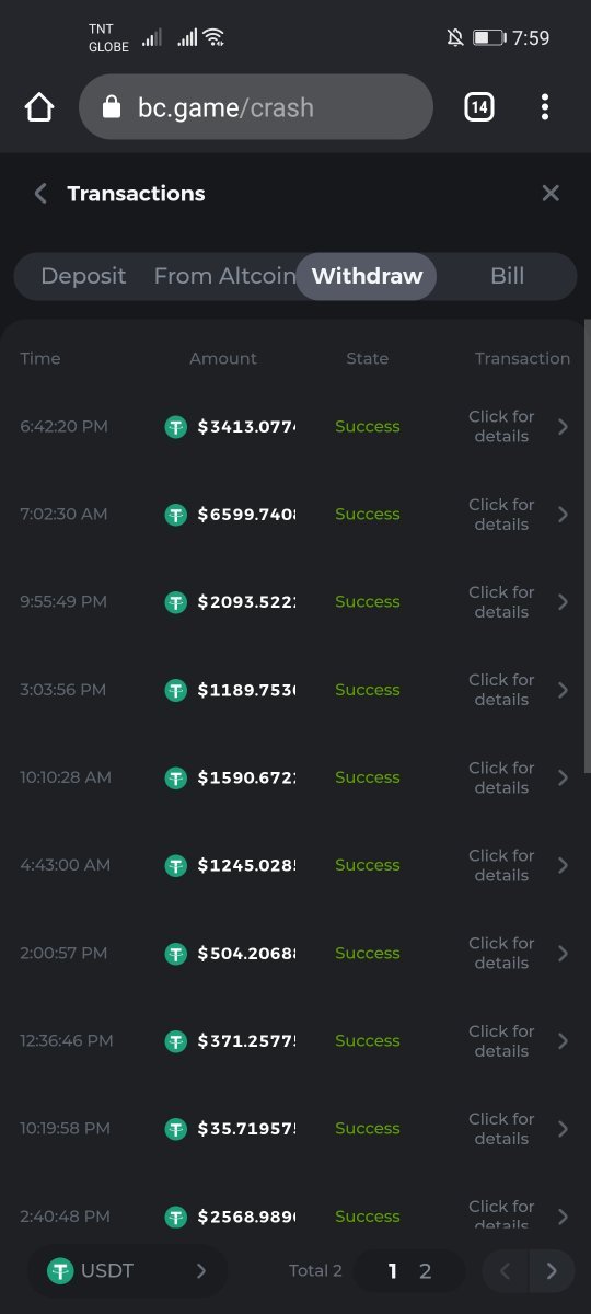 Edry79 Posted June 14, 2022 Share Posted June 14, 2022 Unbelievable!!! I was down about $1000 and I was sad about it and I had nothing in my pocket and I looked at my rakeback and saw $1.50. I lost all but $.15 playing crash and bet the last $.15 and let it ride . Auto cashed out at 100x . Ok $15. Two rounds later I let $1.50 ride and cashed out at 89x . Ok $135 . Played crash a few more minutes til I was at $300 . Switched to slots , WILD WILD RICHES , and 20 minutes later I cashed out .43 BTC which at the time was $20k. I went from not having even one paper dollar in my pocket to $20k in bout 30mins . What a ride !!! Link to comment Share on other sites More sharing options...