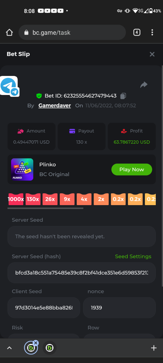 Gamerdaver Posted June 15, 2022 Share Posted June 15, 2022 Soo... I'm still pretty new to BC.game ... Not in terms of sign up date, but in terms of playing here. I have been playing loyally to another place for around 13 months(I am almost at 1,000,000 usd wager there) But... around 11 months in, things started to change and I heard about BC game quite a few times. So I joined! And I started playing alittle bit here and there before deciding if I should switch over or not! I'm a big keno player and have been for awhile. Just as I thought keno was no fun on BC game.... I hit this! And on the lowest odd setting at that! 10# high! Then... Not to long after that.... I hit 130x plinko! And again ... And again! So.. needless to say, I'm much close on the "yes" side of making the switch over to BC.game! I LOVE the amount of available crypto currencies here. I also love the amount of games! I found out there was a forum here 5 days ago, and I'm about to get my first forum challenge reward from the Egyptian originals slot! - Gamerdaver Link to comment Share on other sites More sharing options...