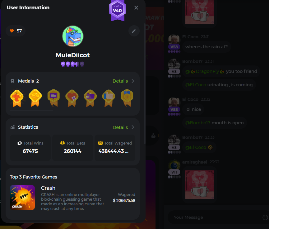 Muckinnuts Posted June 13, 2022 Share Posted June 13, 2022 My favorite memory of bc game is the day that I turned a $31 deposit of btc in to 3.6 btc in less than 24 hours it was the craziest string of luck I have ever had ...thank you bc for the awesome wins and the great games!!! Link to comment Share on other sites More sharing options...