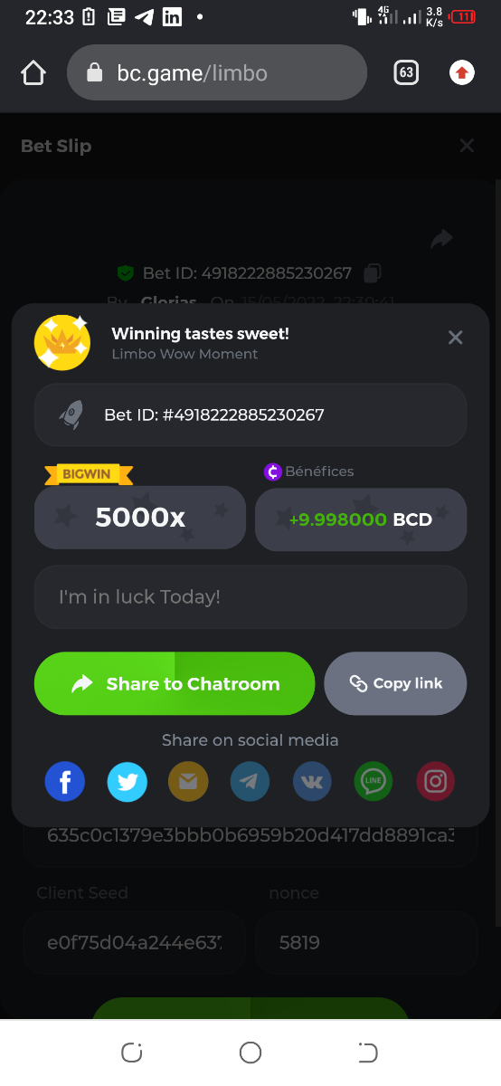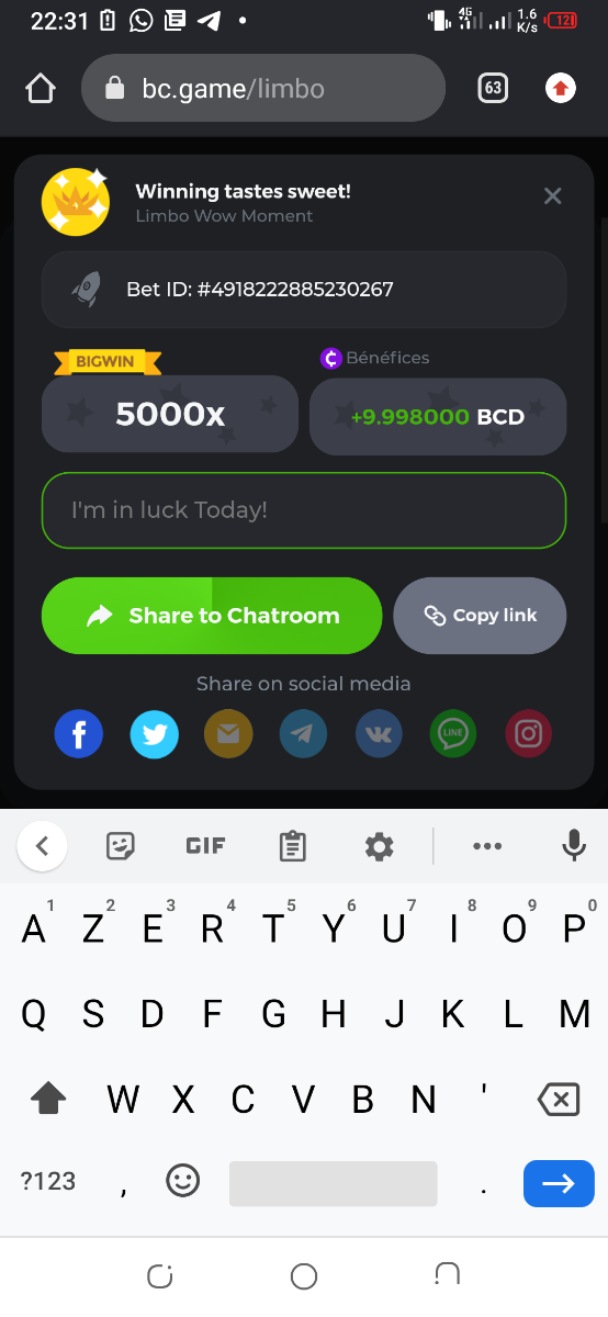 Glorias Posted June 13, 2022 Share Posted June 13, 2022 Mon meilleur est lorsque j'ai fais des multiplicateurs de 5000× sur BC deux fois successive alors que j'avais des miettes 0.002 Link to comment Share on other sites More sharing options...